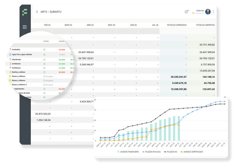 Gestioná contratos separados, desde la previsión hasta la recepción definitiva,